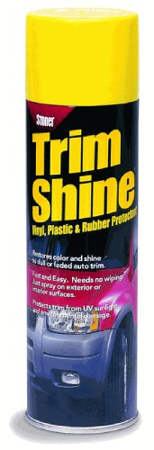 Stoner Trim Shine for Vinyl, Plastic and Rubber Protectant 12 oz. Aerosol Can is an easy-to-use, spray-on coating that instantly shines and brightens dull or faded plastic, vinyl, rubber, and other surfaces. Trim Shine restores color and brilliance to bumpers, running boards, door trim, convertible tops, dashboards, seating, AC vents, hoses, door gaskets, and more. It even hides ugly white wax marks on black exterior trim. Trim Shine utilizes a proprietary Wipe-FREE aerosol technology. Just spray it on and walk away. Needs no wiping or rags. NO dirty hands or waste like with drippy, milky products (many pros avoid them too time consuming and streaky). Perfect for hard-to-reach areas like dashboards and under the hood. Take to the car wash even shines wet trim Finicky detailers use Trim Shine and charge 0 or even 0. Now YOU can make your vehicle look brand-new, protect your investment, and boost your resale or trade-in value in seconds with Trim Shine. Best of all, Trim Shine protects against damaging sunlight and UV rays.